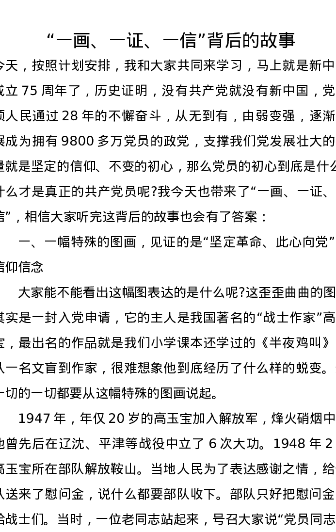 党课讲稿:“一画、一证、一信”背后的故事