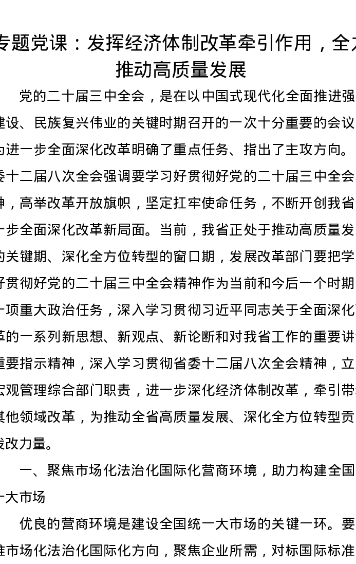 党课讲稿:发挥经济体制改革牵引作用,全力推动高质量发展