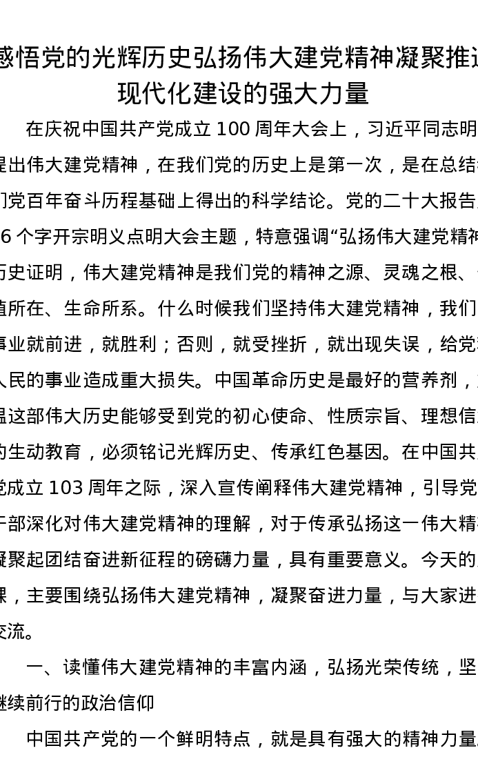 党课讲稿:感悟党的光辉历史弘扬伟大建党精神凝聚推进现代化建设的强大力量