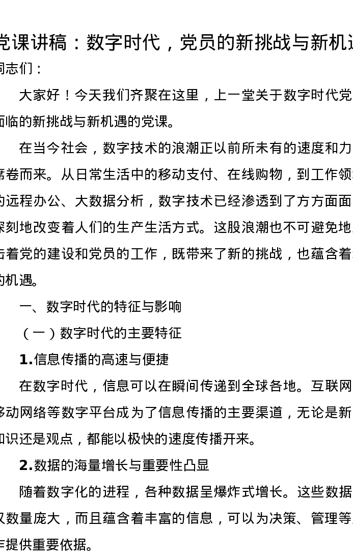 党课讲稿:数字时代,党员的新挑战与新机遇