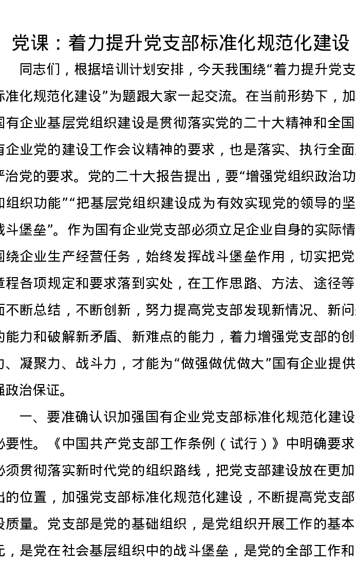 党课讲稿:着力提升党支部标准化规范化建设