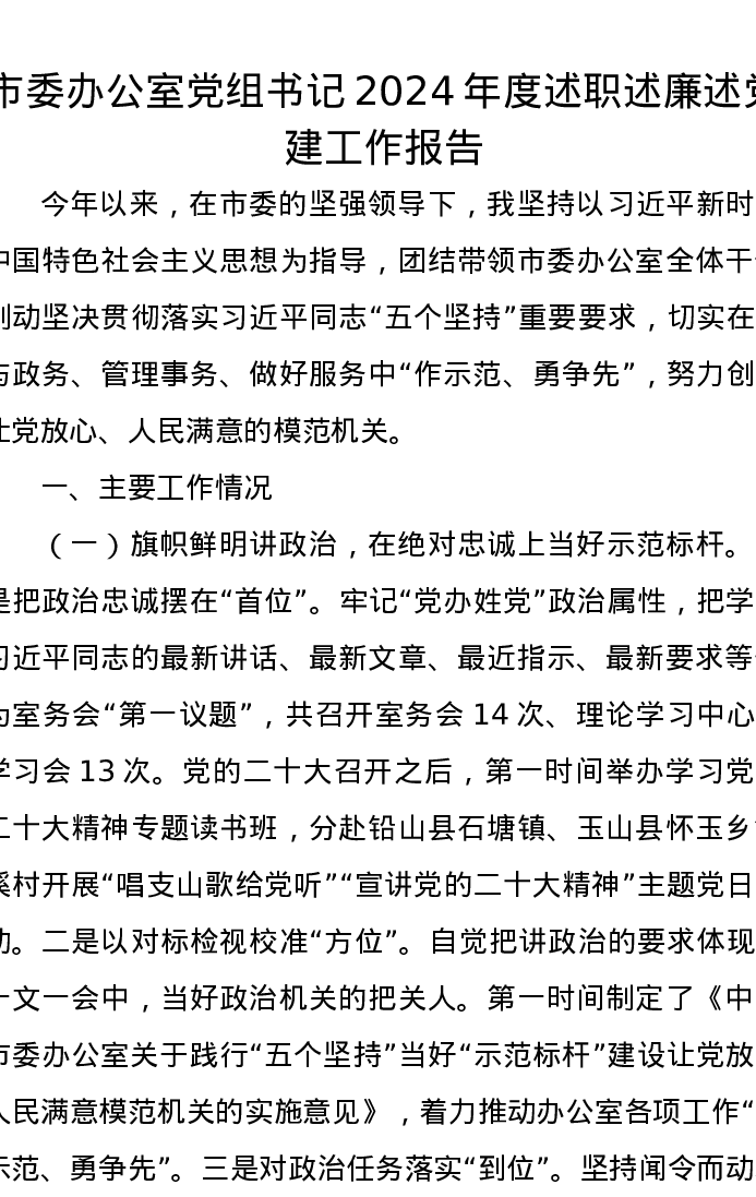 市委办公室党组书记2024年度述职述廉述党建工作报告