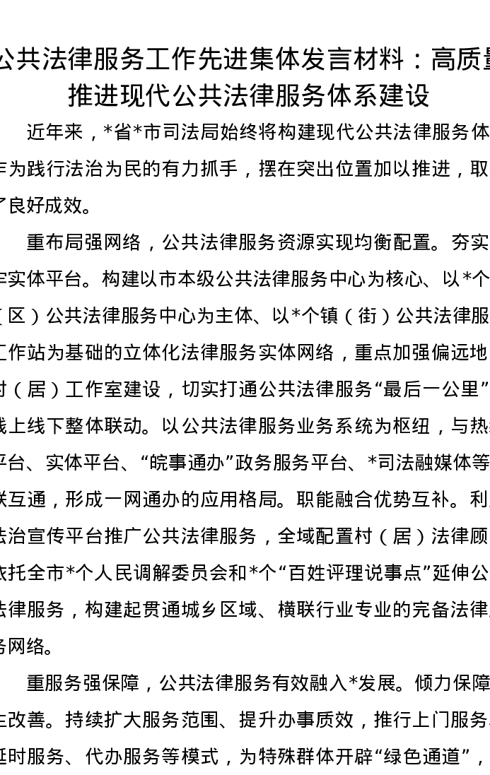 公共法律服务工作先进集体发言材料:高质量推进现代公共法律服务体系建设