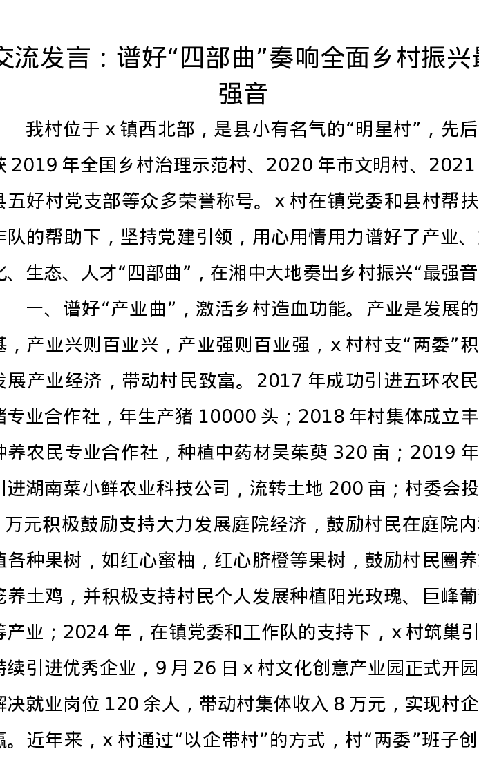 交流发言:谱好“四部曲” 奏响全面乡村振兴最强音