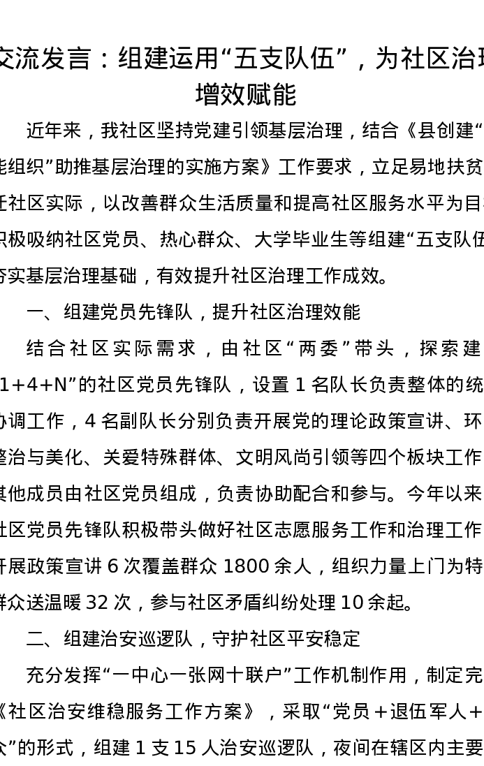 交流发言:组建运用“五支队伍”,为社区治理增效赋能