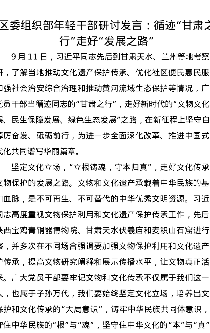 区委组织部年轻干部研讨发言:循迹“甘肃之行”走好“发展之路”