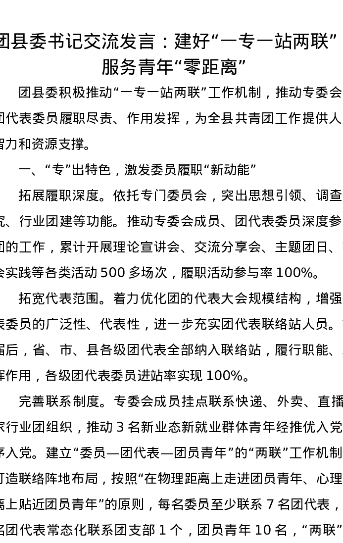 团县委书记交流发言:建好“一专一站两联”,服务青年“零距离”