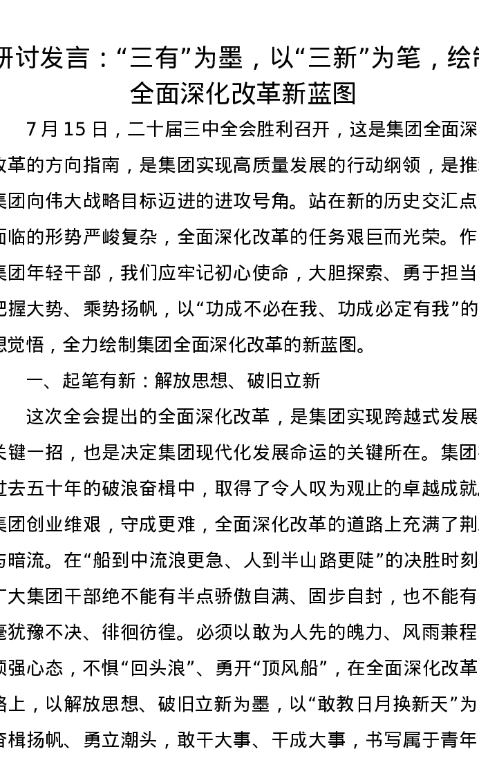 研讨发言:“三有”为墨,以“三新”为笔,绘制全面深化改革新蓝图