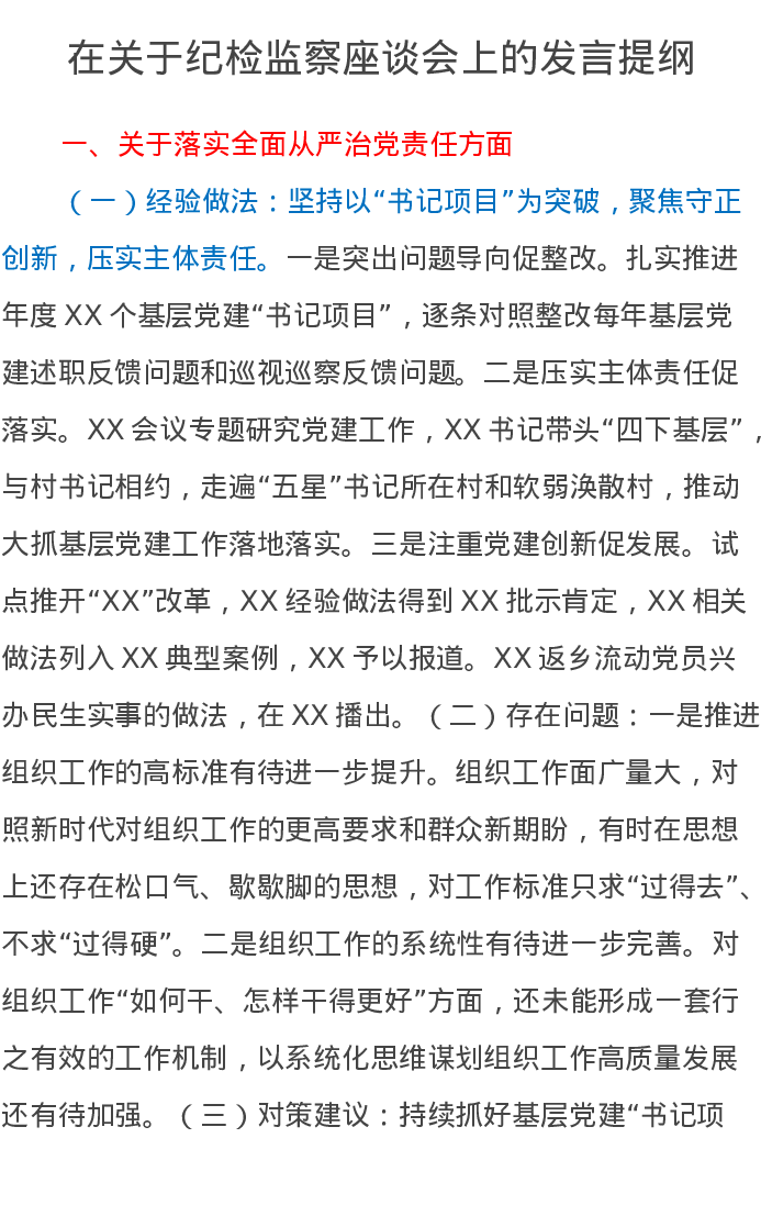 在关于纪检监察座谈会上的发言提纲