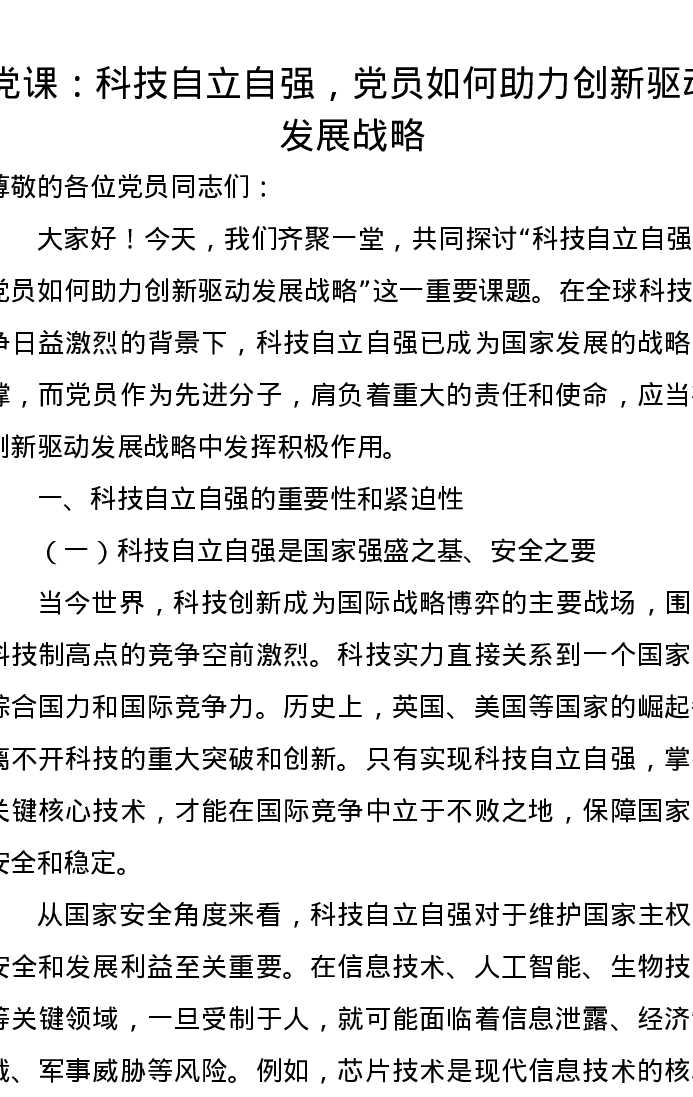 党课讲稿:科技自立自强,党员如何助力创新驱动发展战略