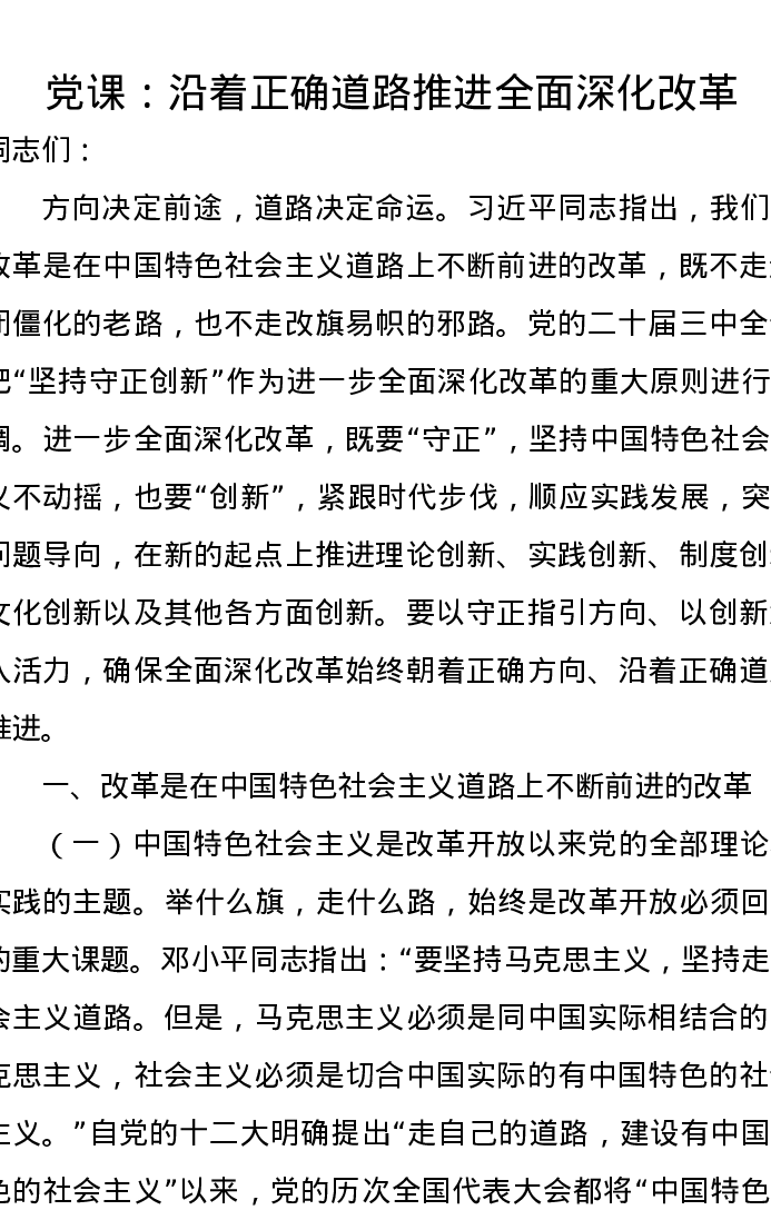 党课讲稿:沿着正确道路推进全面深化改革