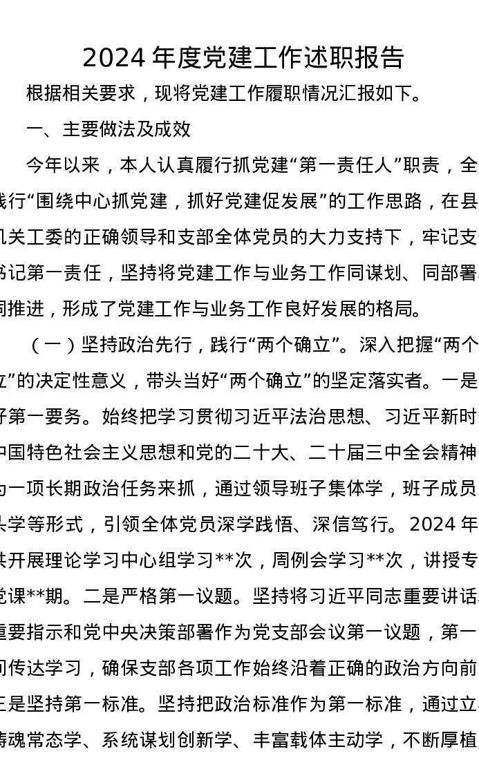 2024年度党建工作述职报告