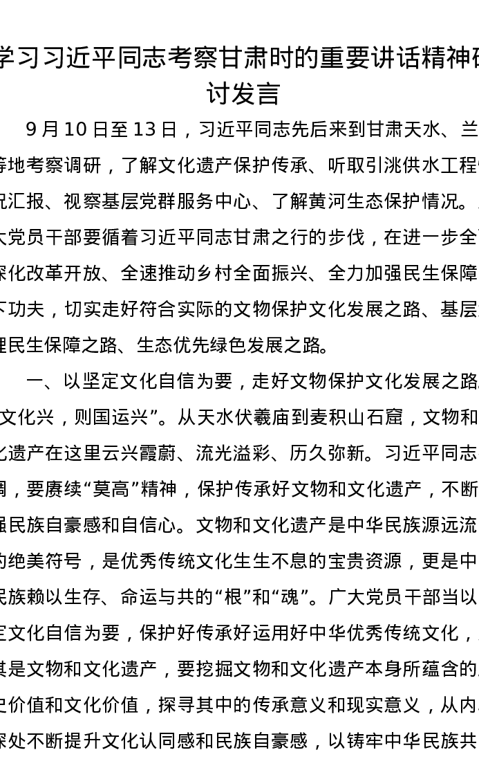 学习习近平总书记考察甘肃时的重要讲话精神研讨发言