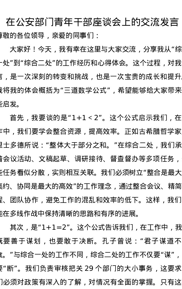 在公安部门青年干部座谈会上的交流发言
