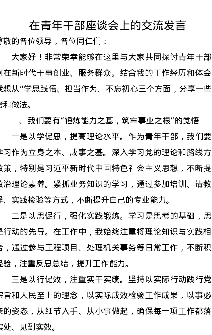 在青年干部座谈会上的交流发言