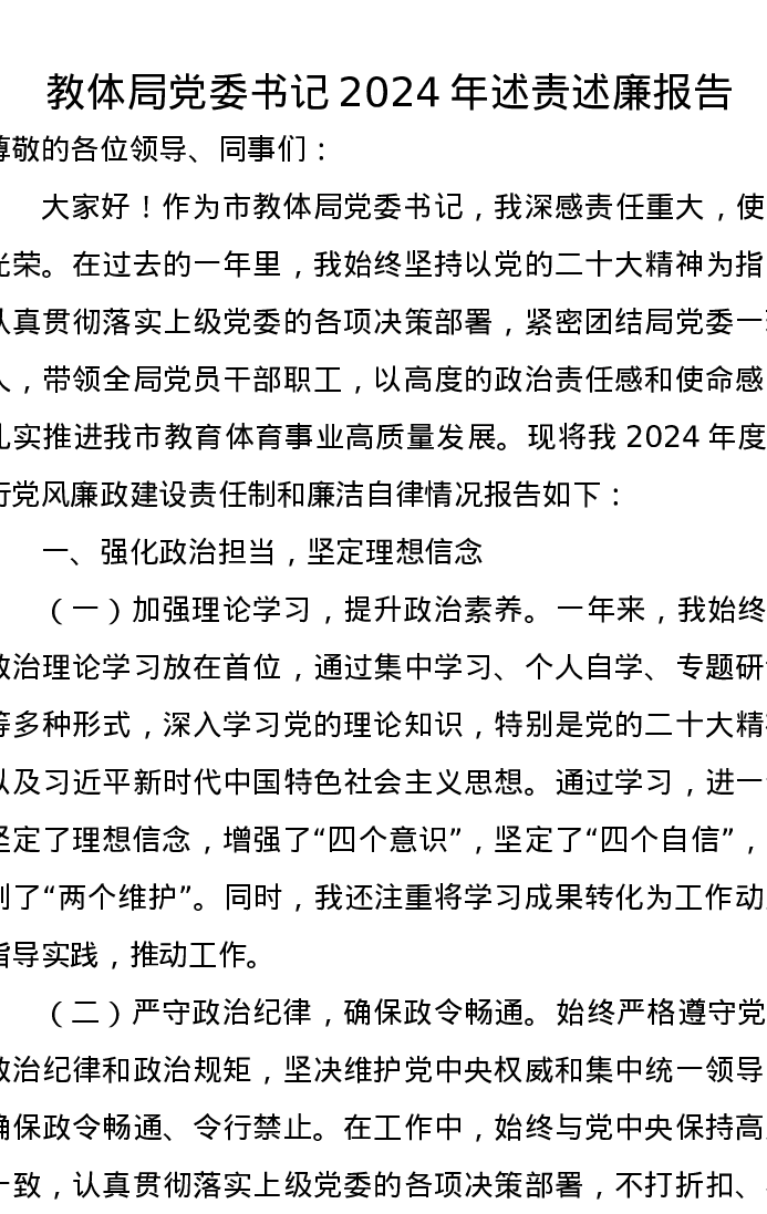 教体局党委书记2024年述责述廉报告
