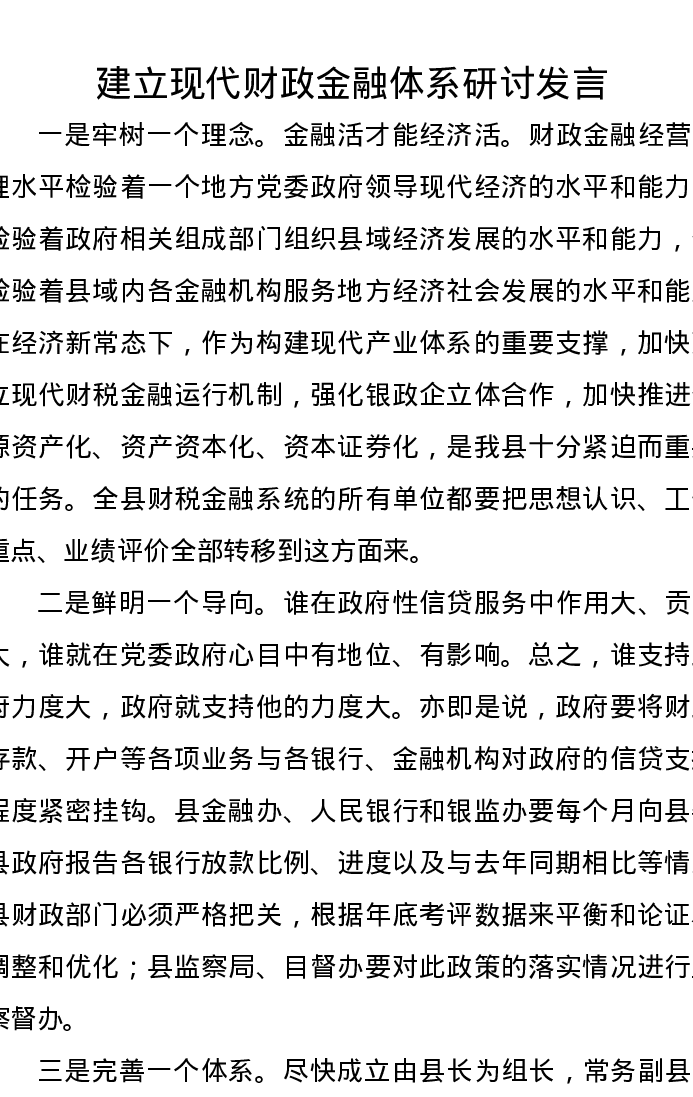 建立现代财政金融体系研讨发言