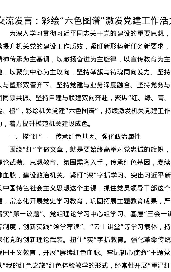 交流发言:彩绘“六色图谱”激发党建工作活力