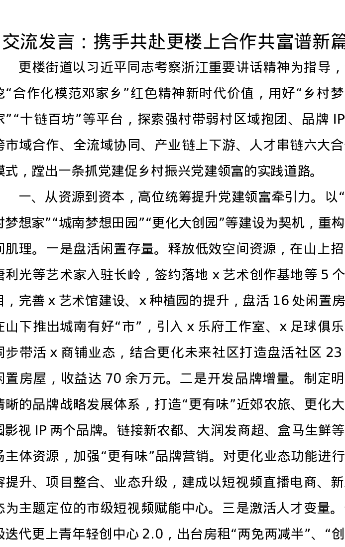 交流发言:携手共赴更楼上,合作共富谱新篇