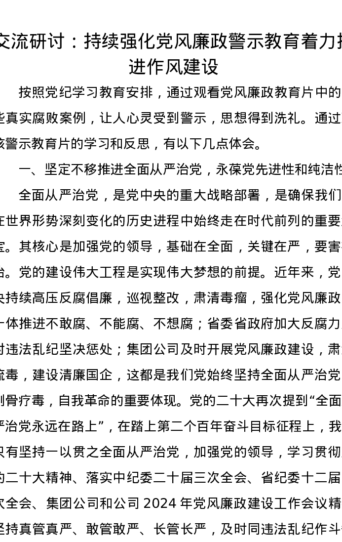 交流研讨发言:持续强化党风廉政警示教育,着力推进作风建设