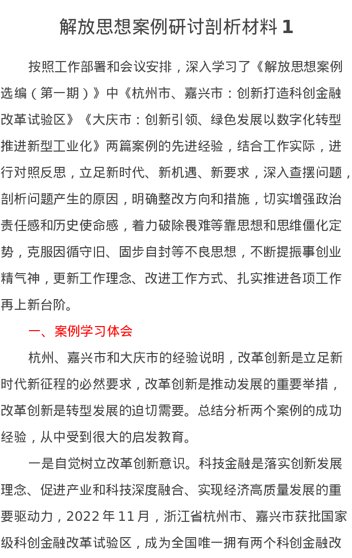 解放思想案例研讨剖析材料1