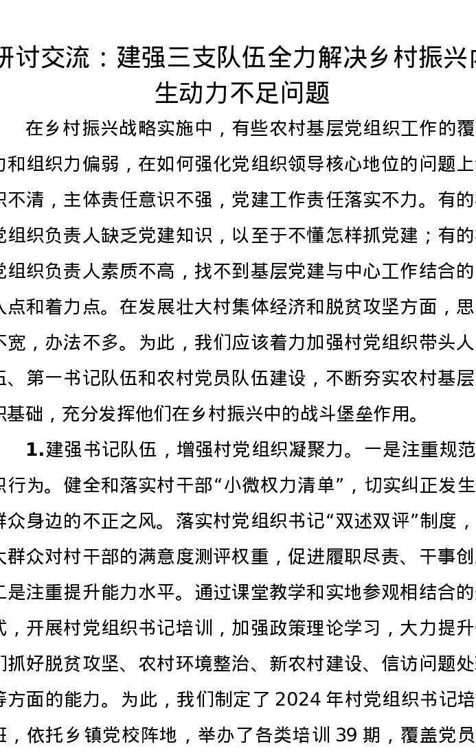 研讨交流发言:建强三支队伍,全力解决乡村振兴内生动力不足问题