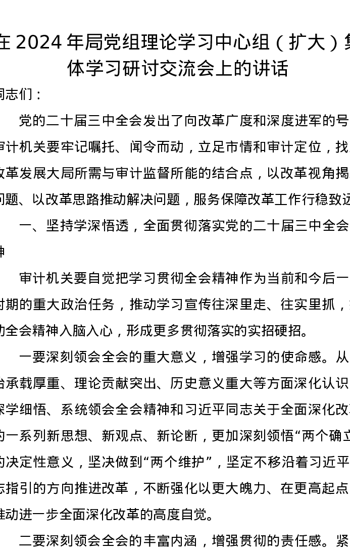 在2024年局党组理论学习中心组(扩大)集体学习研讨交流会上的讲话