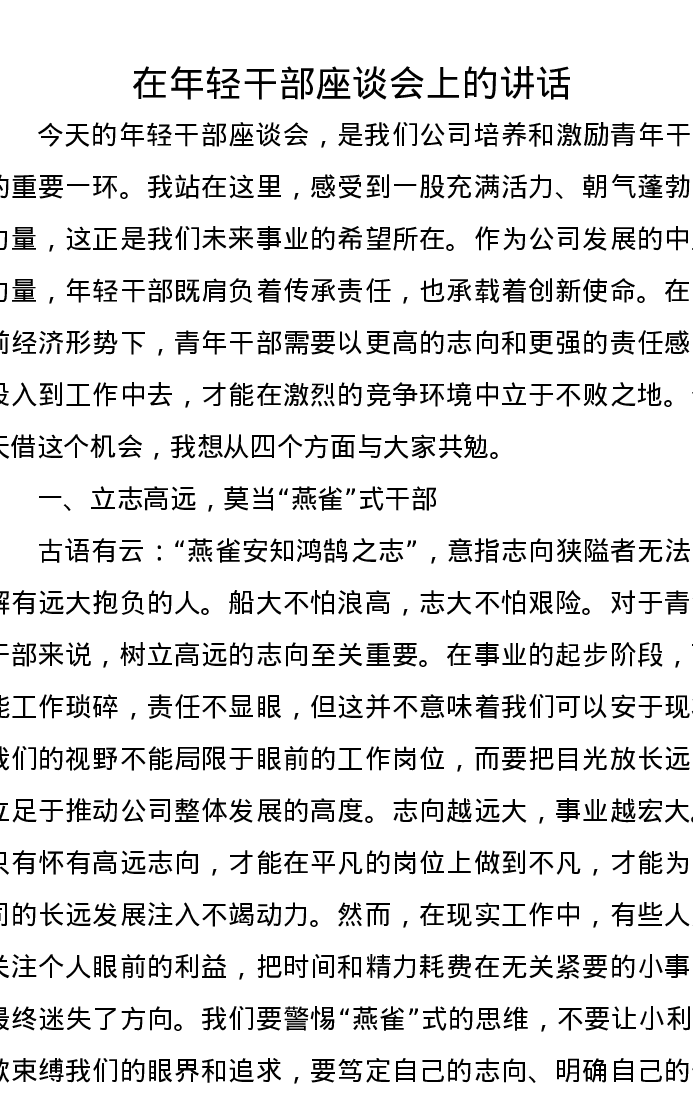 在年轻干部座谈会上的讲话