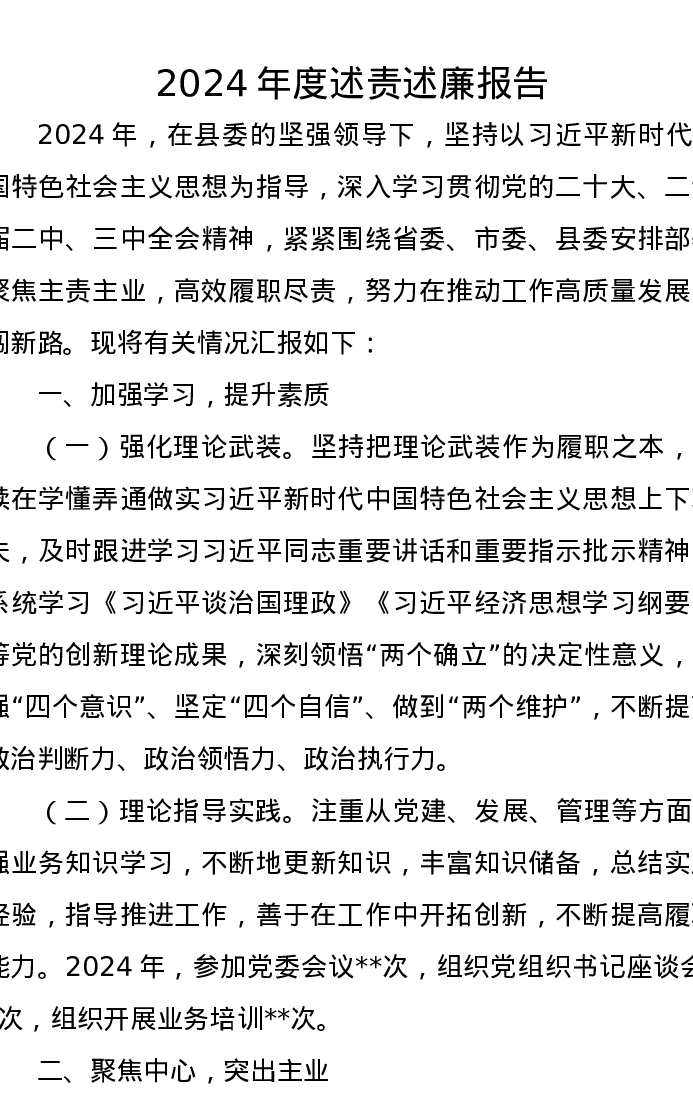 2024年度X乡镇述责述廉报告