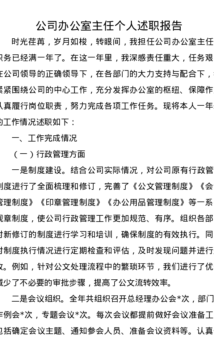 公司办公室主任个人述职报告