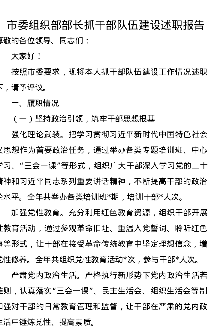 市委组织部部长抓干部队伍建设述职报告
