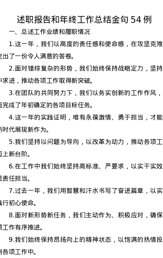 述职报告和年终工作总结金句54例