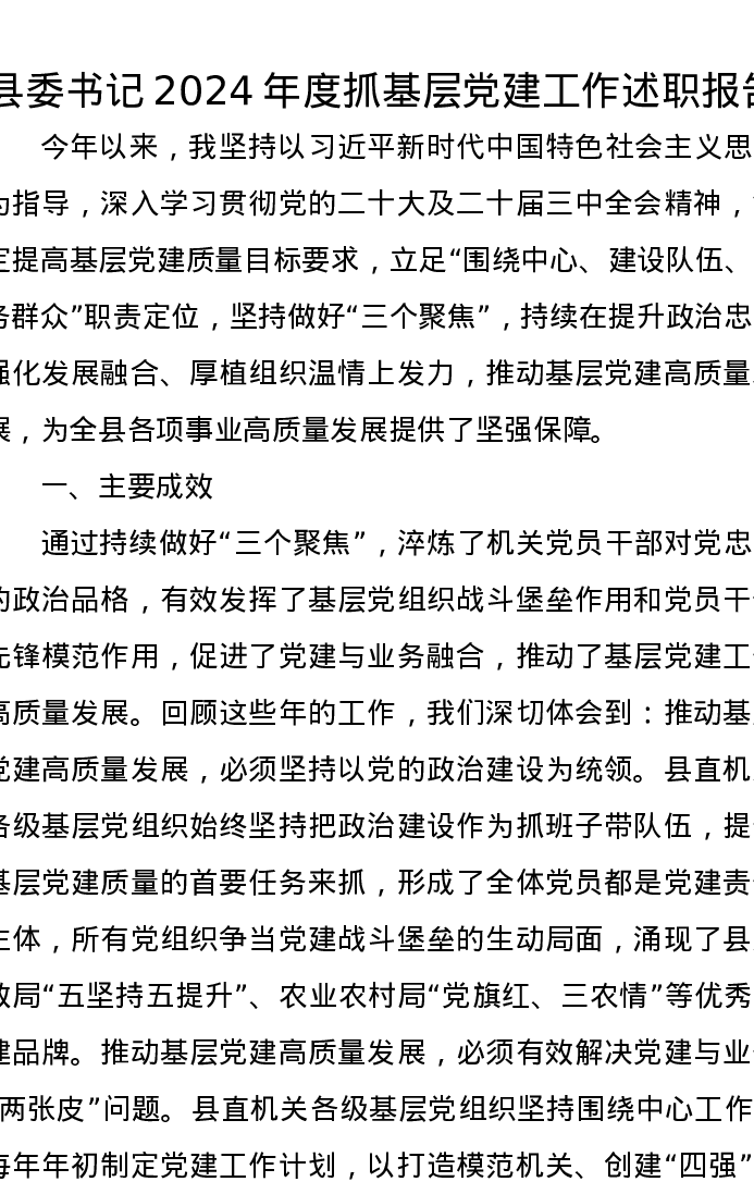 县委书记2024年度抓基层党建工作述职报告