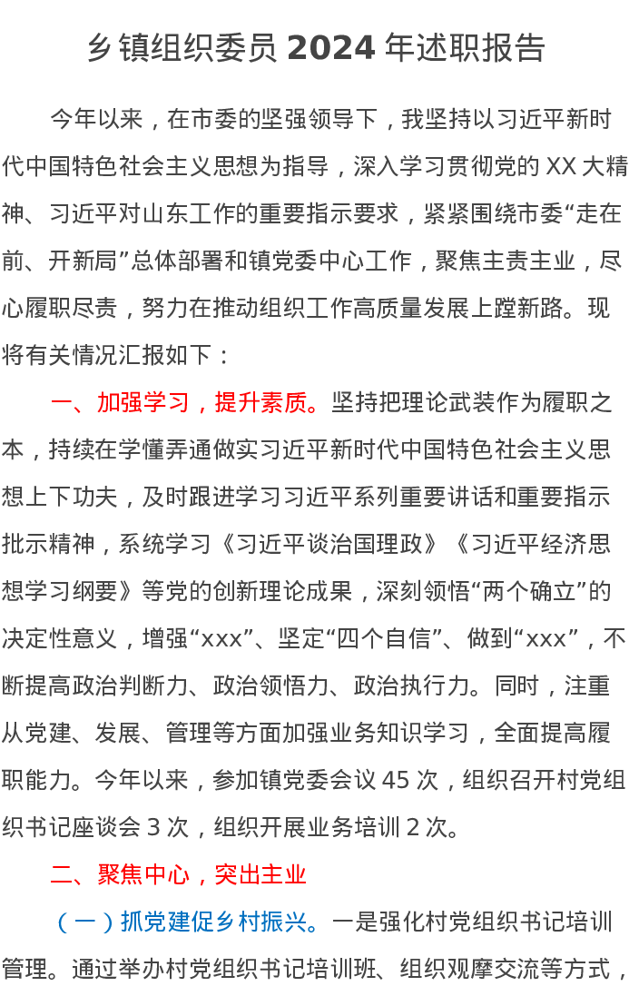 乡镇组织委员2024年述职报告