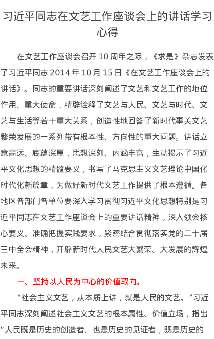 习近平总书记在文艺工作座谈会上的讲话学习心得