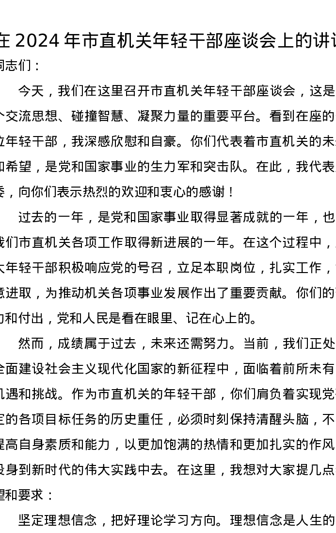 在2024年市直机关年轻干部座谈会上的讲话