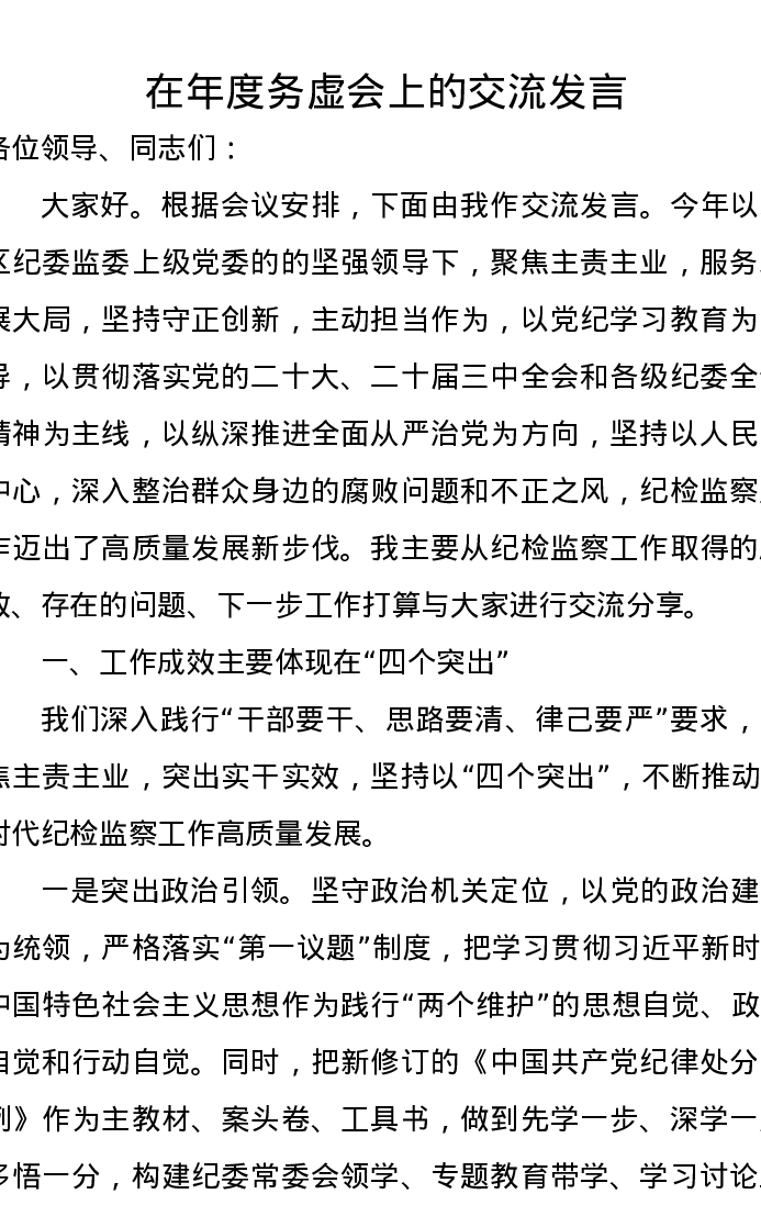 在年度务虚会上的交流发言