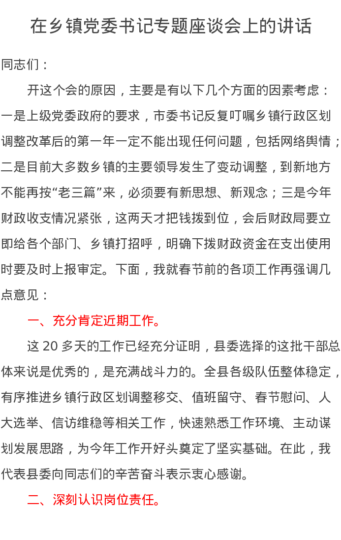 在乡镇党委书记专题座谈会上的讲话