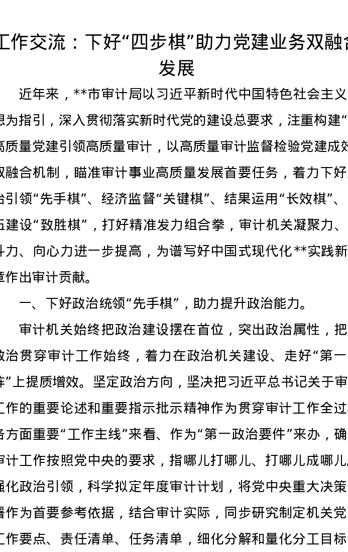 工作交流:下好“四步棋”助力党建业务双融合发展