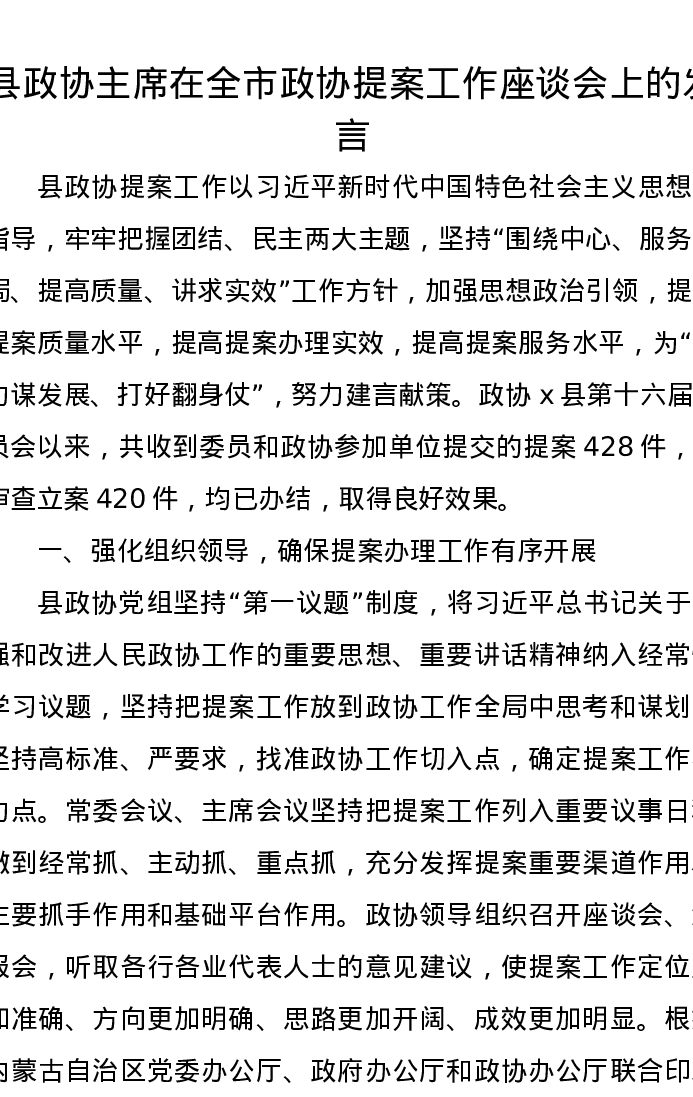 县政协主席在全市政协提案工作座谈会上的发言