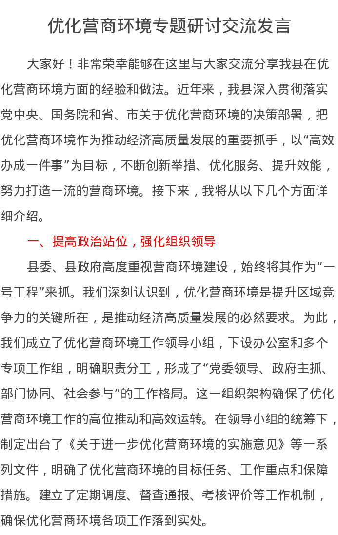 优化营商环境专题研讨交流发言