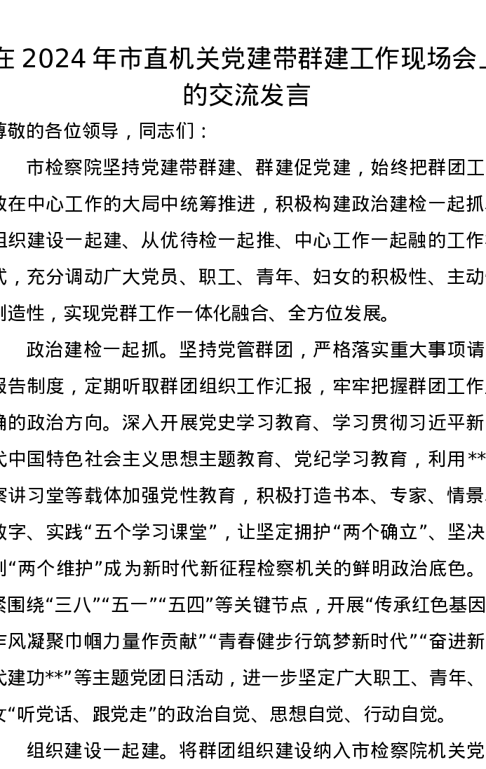 在2024年市直机关党建带群建工作现场会上的交流发言
