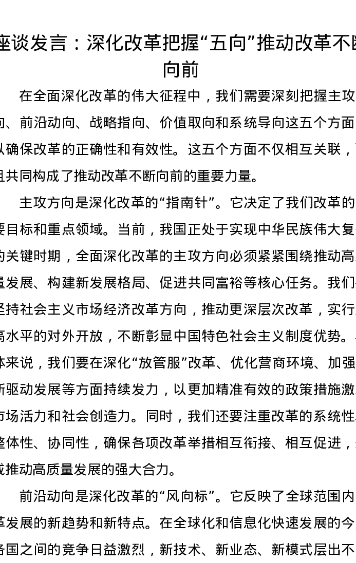 座谈发言:深化改革把握“五向” 推动改革不断向前