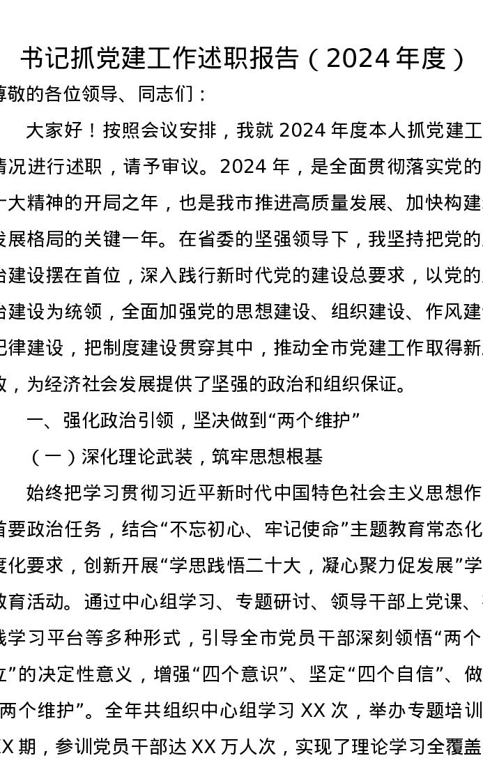 书记抓党建工作述职报告(2024年度)