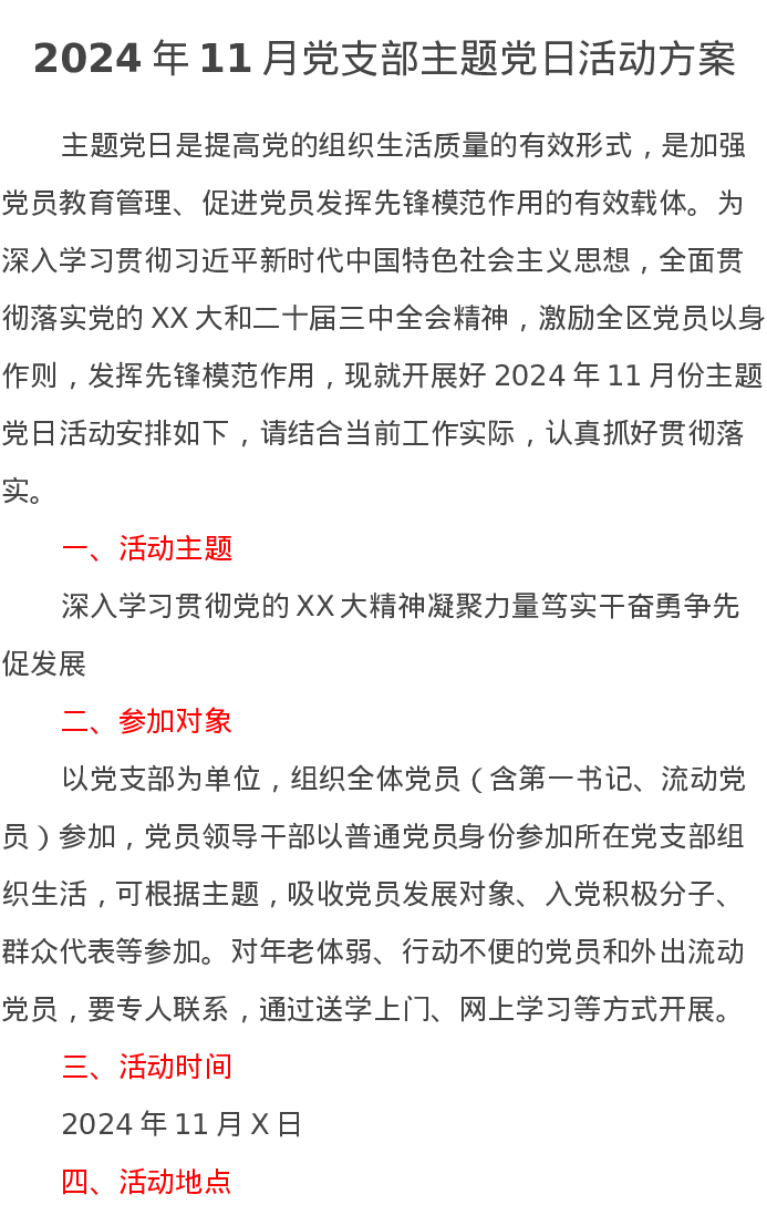 2024年11月党支部主题党日活动方案