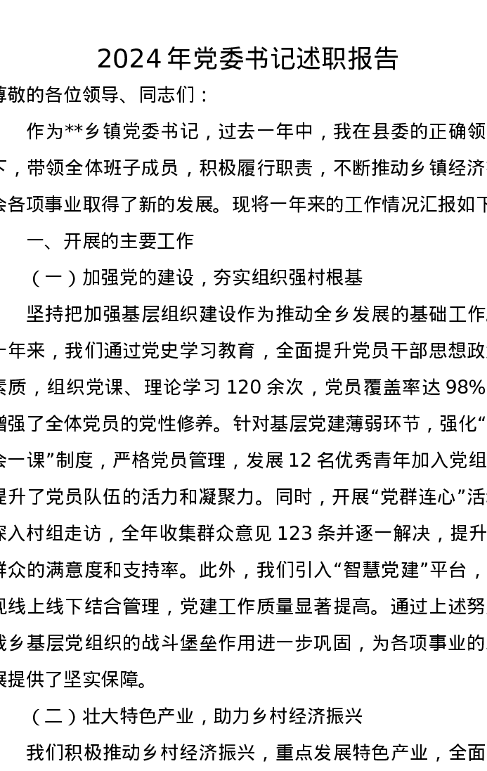 2024年党委书记述职报告