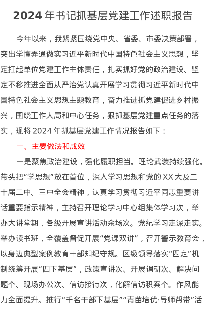 2024年书记抓基层党建工作述职报告