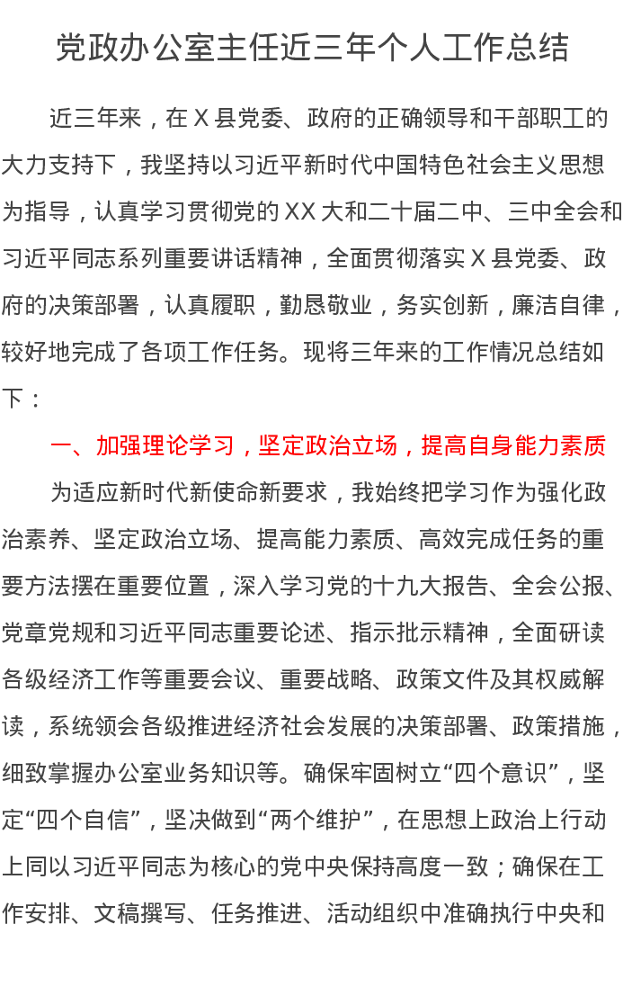 党政办公室主任近三年个人工作总结
