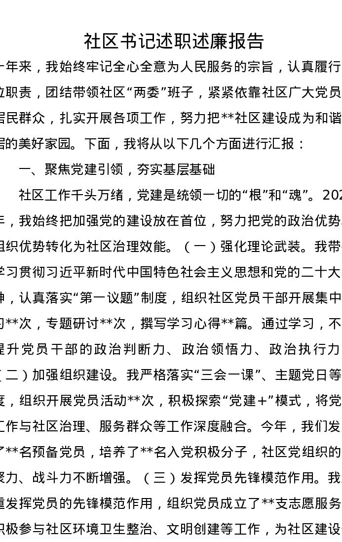社区书记述职述廉报告