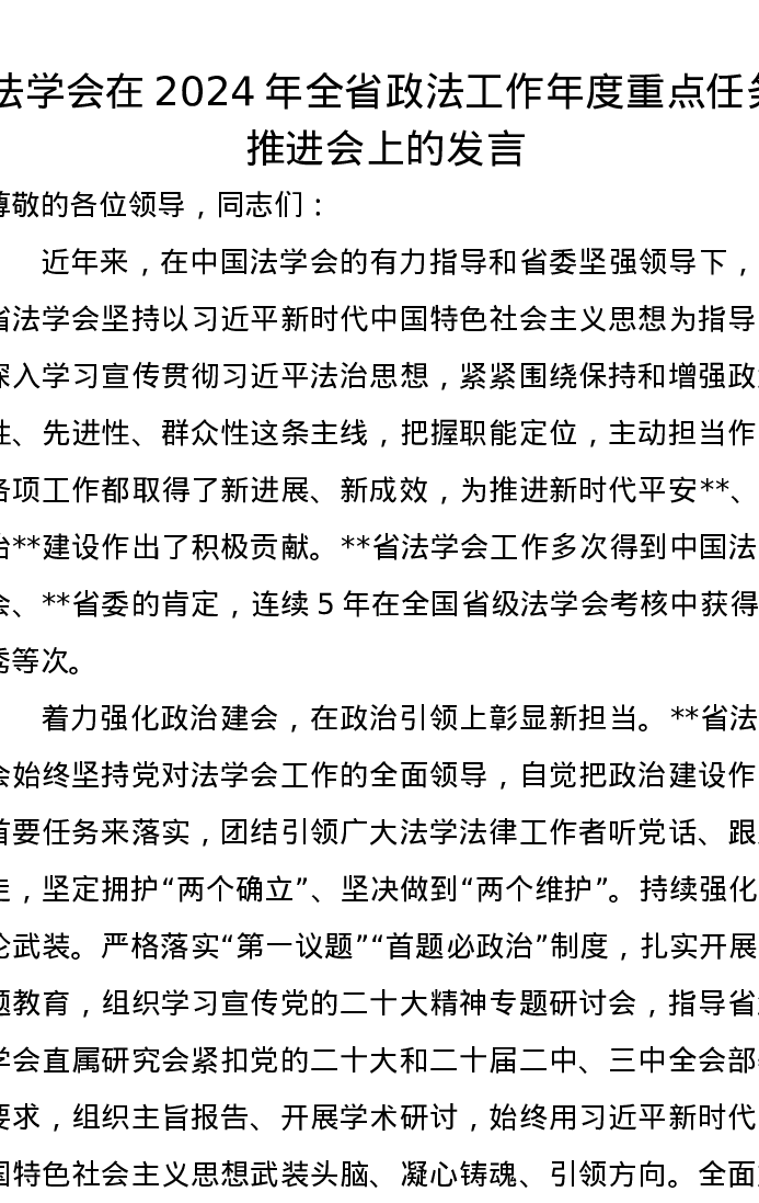 法学会在2024年全省政法工作年度重点任务推进会上的发言
